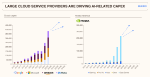 Source: Munro estimates, Google, Amazon, Microsoft, Meta, Nvidia as at 7 August 2025. Nvidia data is at January year end. Graphs’ vertical axes are in millions (USD).
